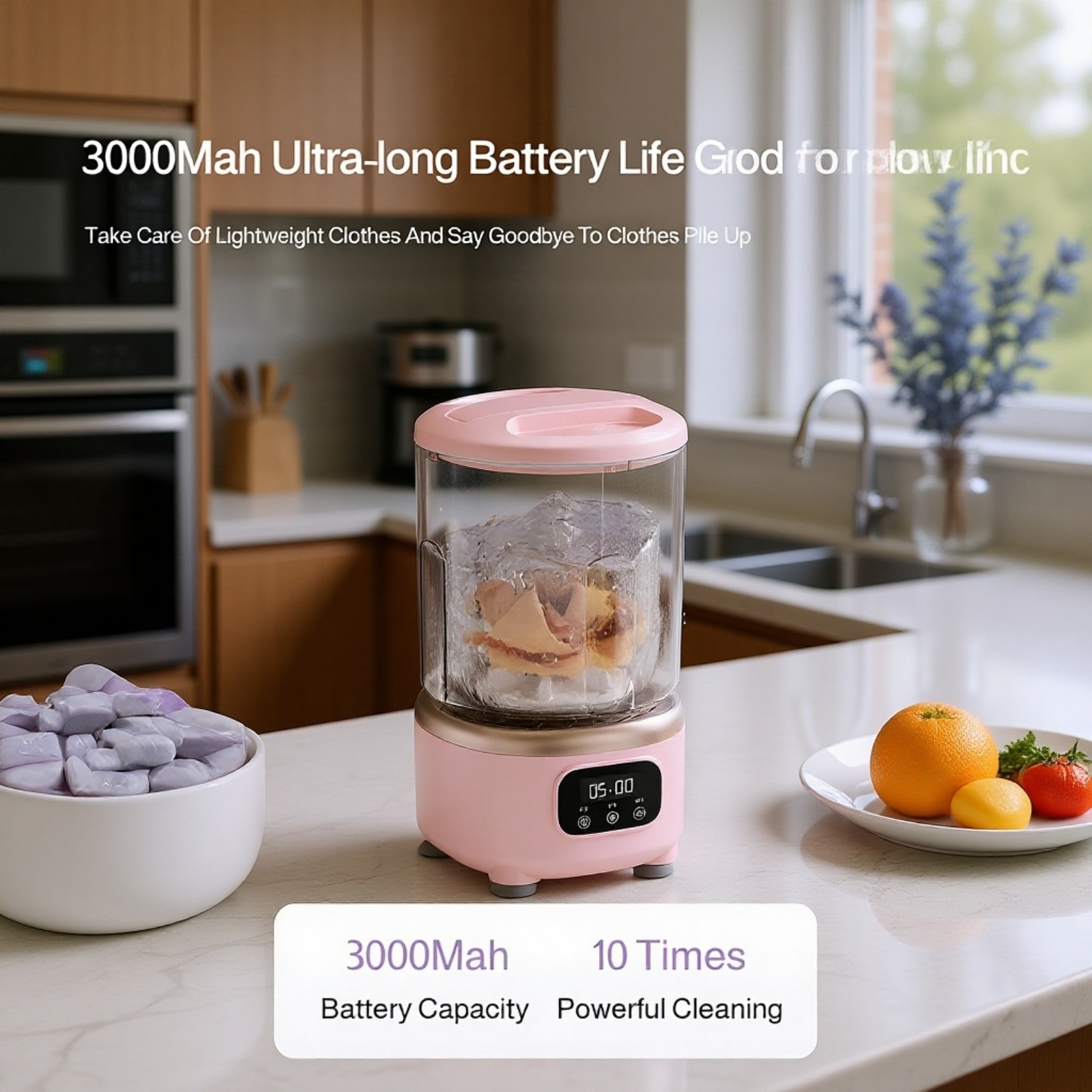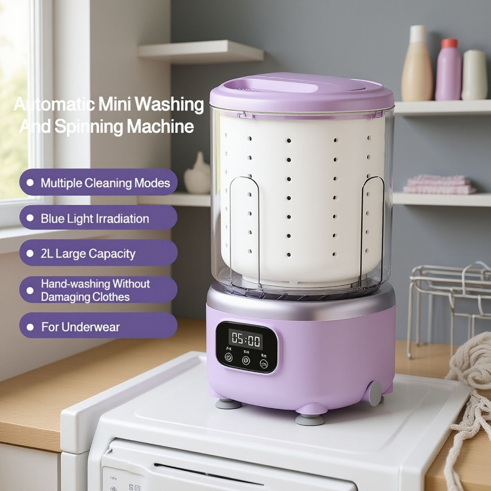 Fully automatic household mini washer-extractor with cup for underwear and briefs, USB charging.