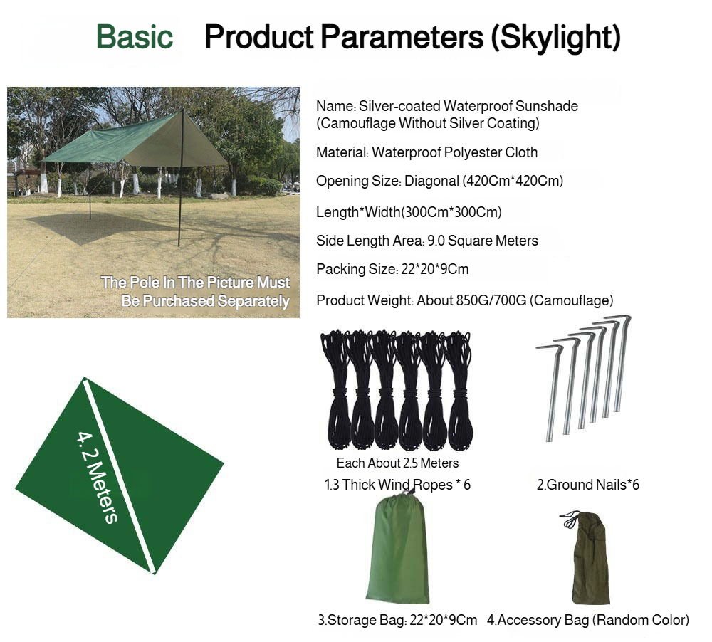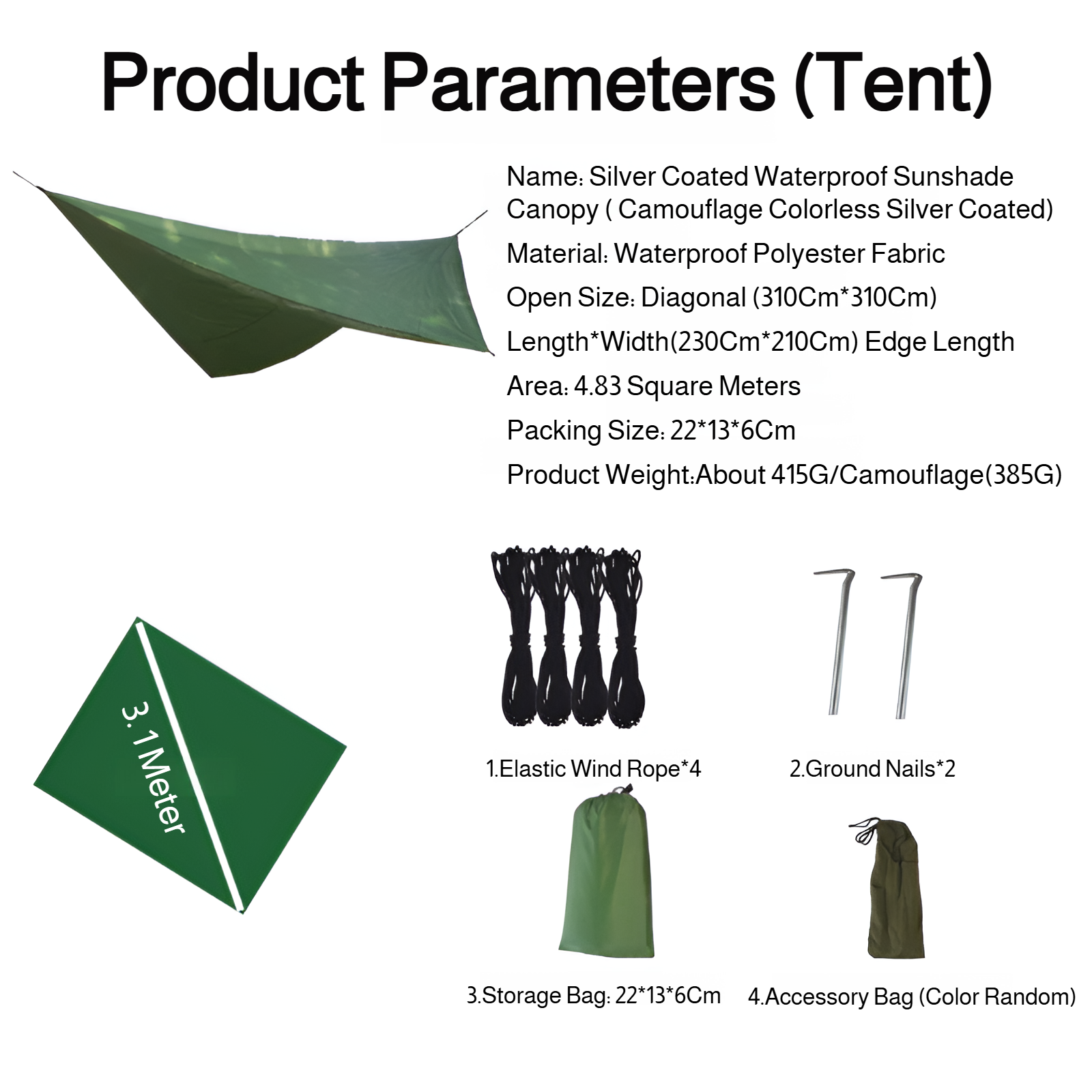 Outdoor camouflage canopy waterproof sunscreen beach sunshade tent coated with silver cloth portable